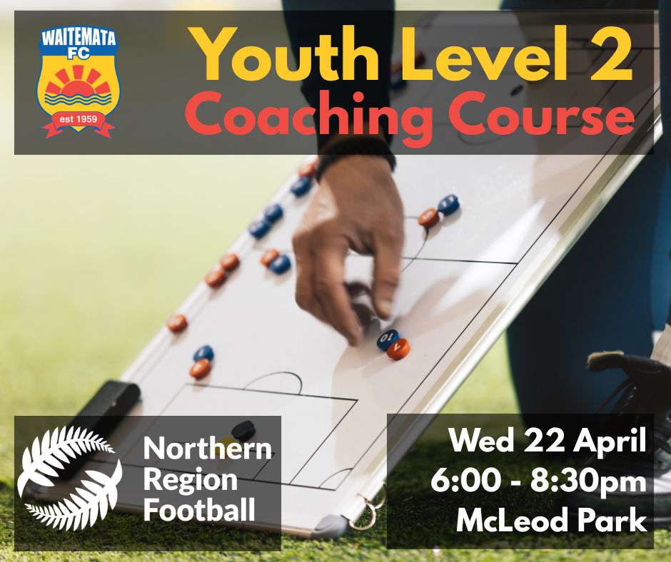 Coaches working in youth football — here’s another great opportunity to continue your coaching development.Waitemata FC will be hosting the NZF Youth Level 2 Coaching Course on Wednesday 22nd April from 6:00pm–8:30pm at McLeod Park.