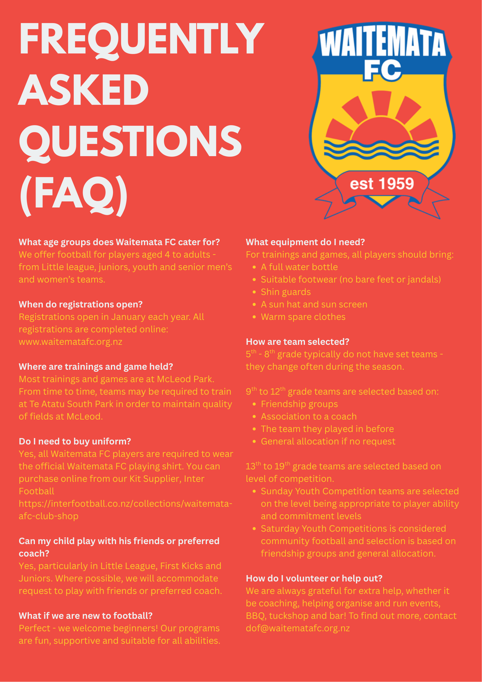 Junior 9-12th Match Day Info